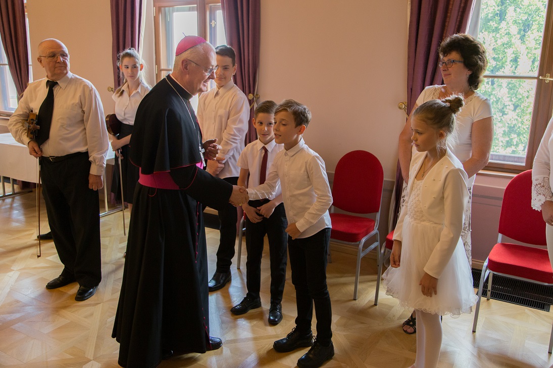 A megbízólevelek átadása után az egri Szent Imre Katolikus Általános Iskola zeneiskolásai adtak rövid műsort, a közös ünnepi ebéd előtt.
