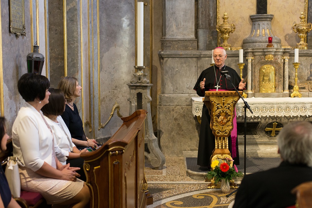 Az Úrangyala közös imádkozásával kezdődött az Egri Főegyházmegyei iskolaigazgatók megbízóleveleinek ünnepélyes átadása az Érseki Palota kápolnájában, július 12-én.