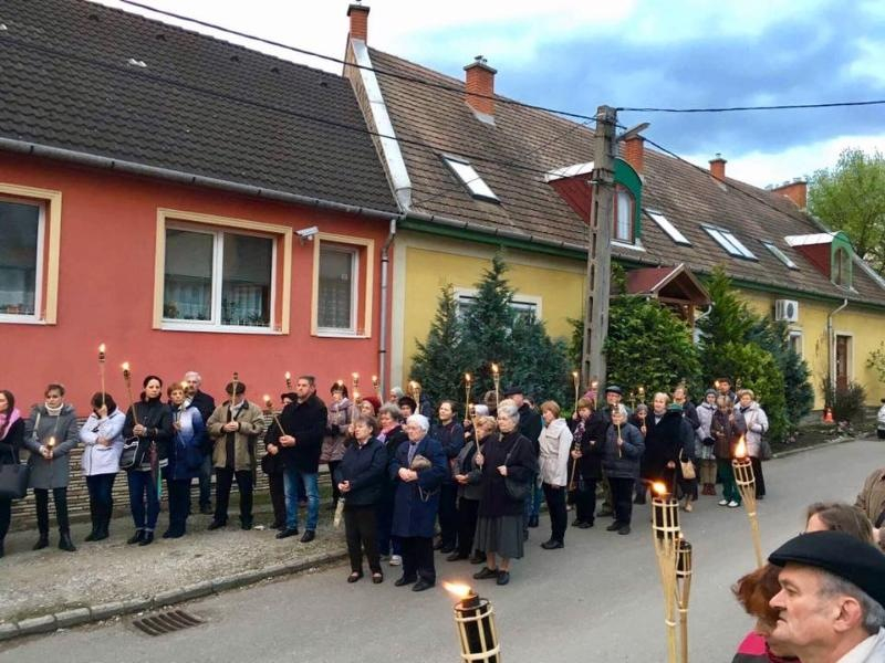 Az egri egyházközség keresztútján a plébánia két fíliájához, Novajhoz és Ostoroshoz tartozók is részt vettek. A szabadtéri fáklyás keresztutat Ficzek László plébános vezette.
